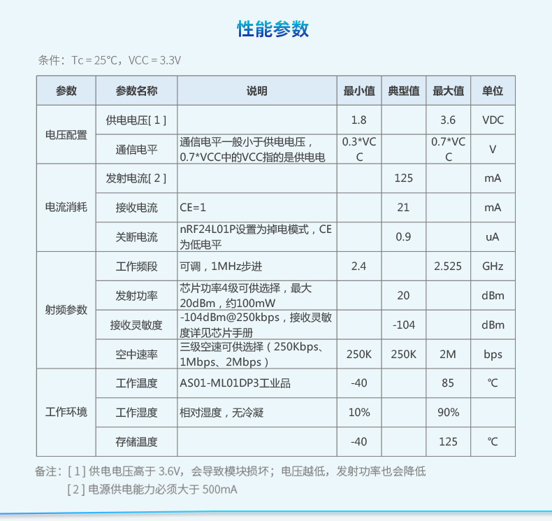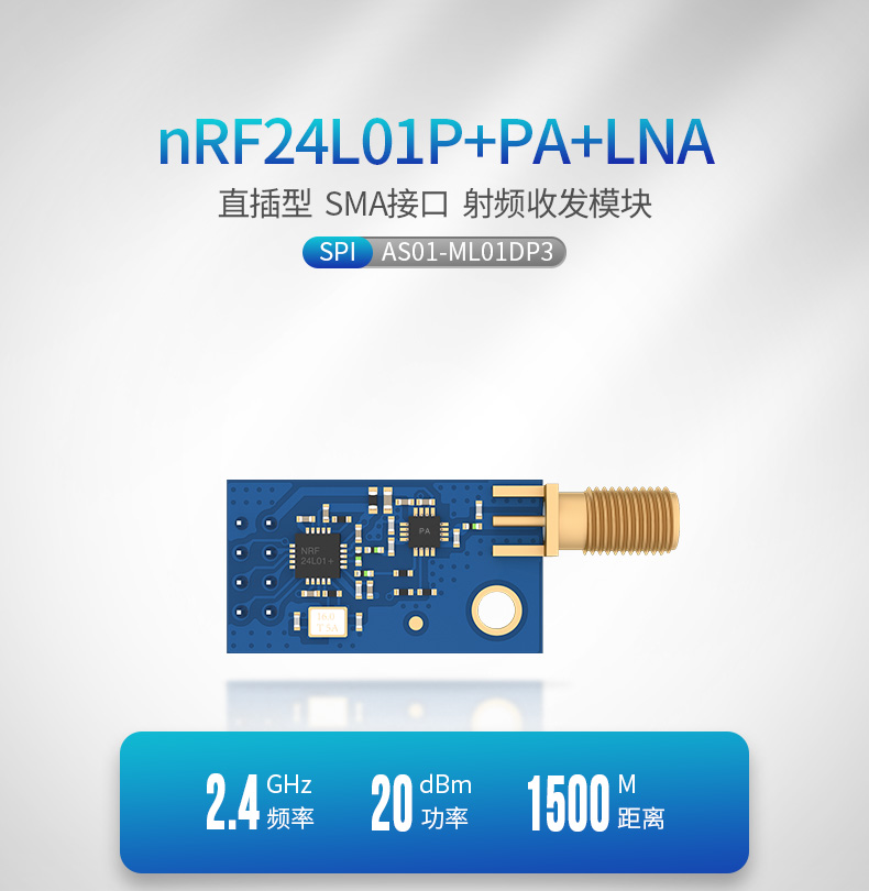 AS01-ML01DP3是一款2.4GHz,100mW,高速,高穩(wěn)定性,高性價比的集無線收發(fā)于一體的數(shù)傳模塊。模塊采用NORDIC原裝nRF24L01P射頻芯片與RFX2401C功放芯片,內建LNA,接收靈敏度提高10dBm,工作在2.4GHz~2.525GHz的ISM頻段。該模塊發(fā)射功率足,頻譜特性好,頻道串擾小,體積小,部分器件達到了軍品級標準。