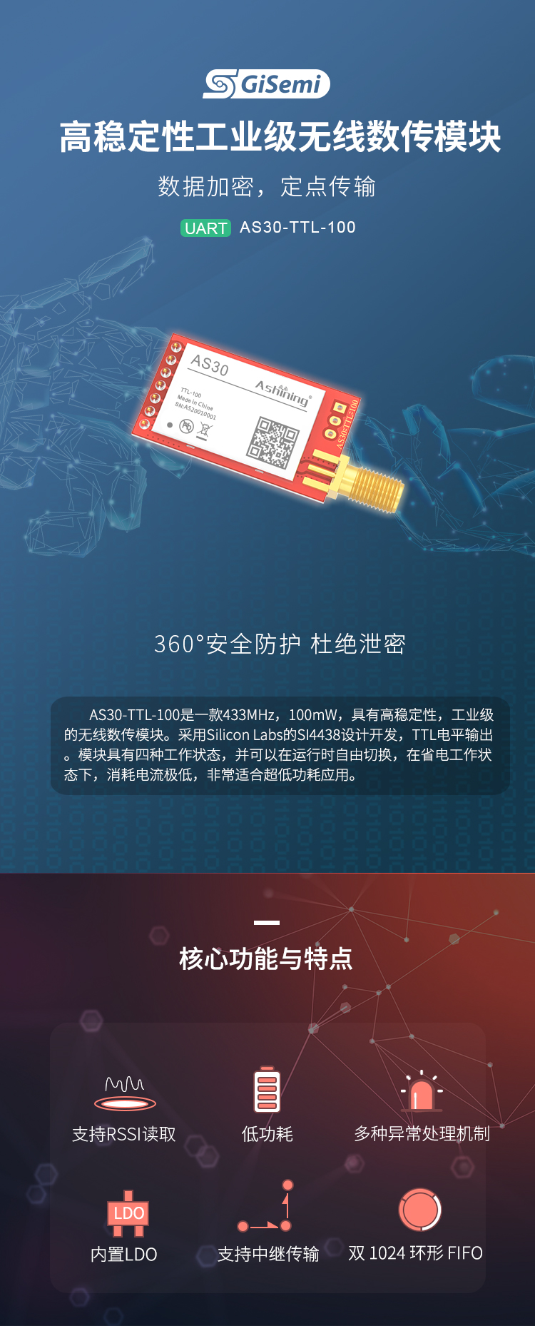433MHz , 100mW,無線串口模塊,數(shù)據(jù)加密,定點傳輸