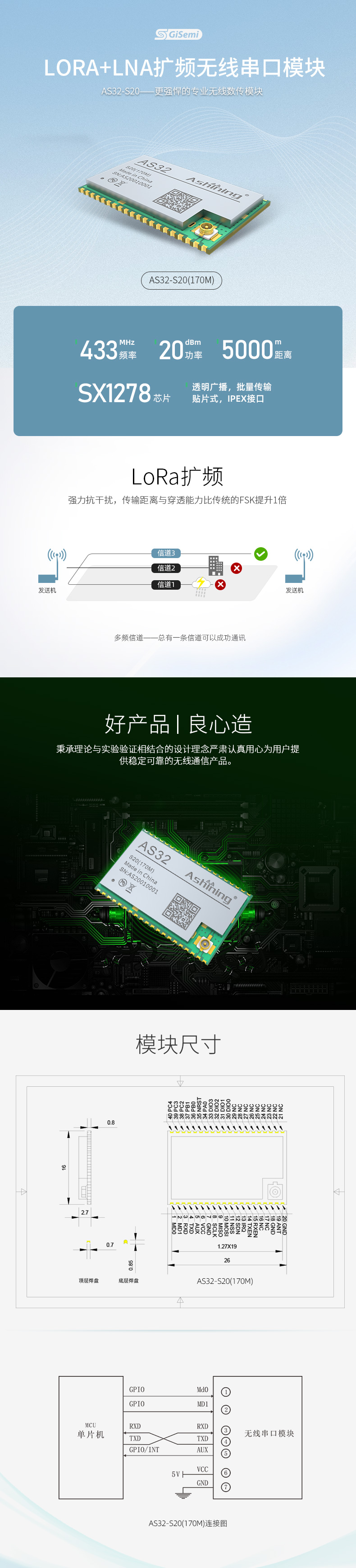170MHz , 100mW,LNA,LORA擴頻無線串口模塊,數(shù)據(jù)加密,定點傳輸