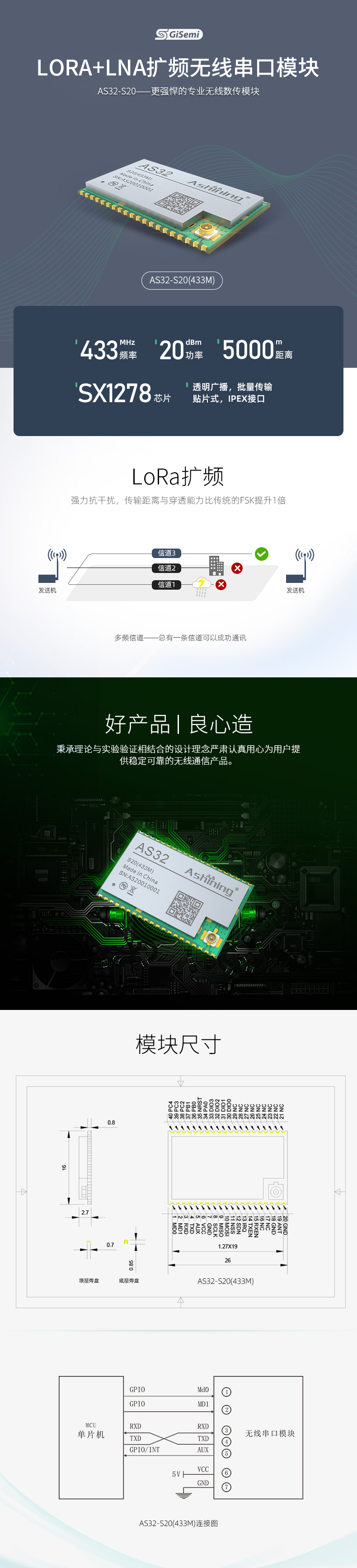 433MHz , 100mW,LNA,LORA擴(kuò)頻無(wú)線串口模塊,數(shù)據(jù)加密,定點(diǎn)傳輸