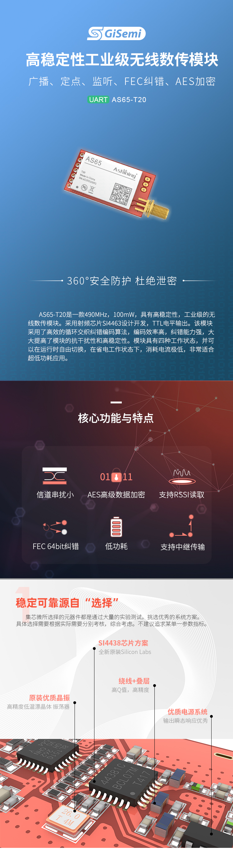 490MHz , 100mW,無線串口模塊,廣播、定點(diǎn)、監(jiān)聽、FEC糾錯、AES加密