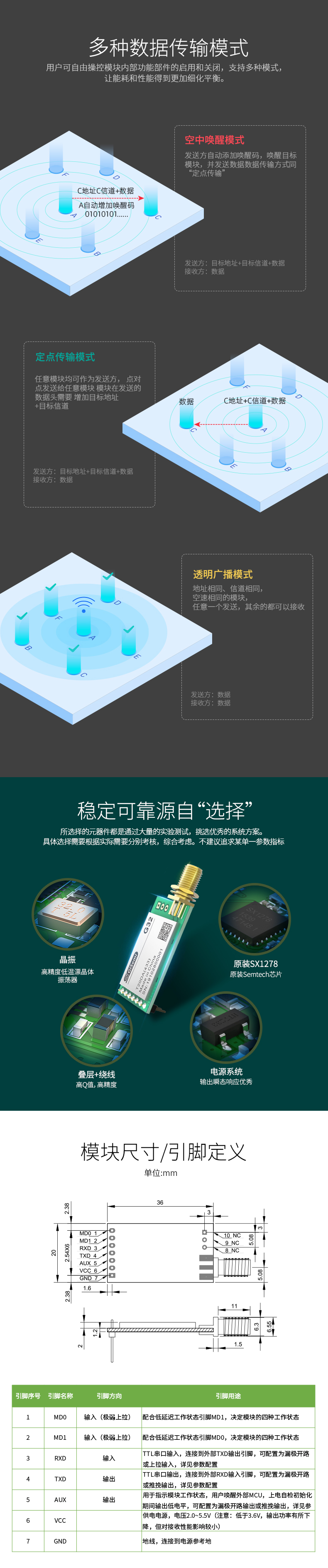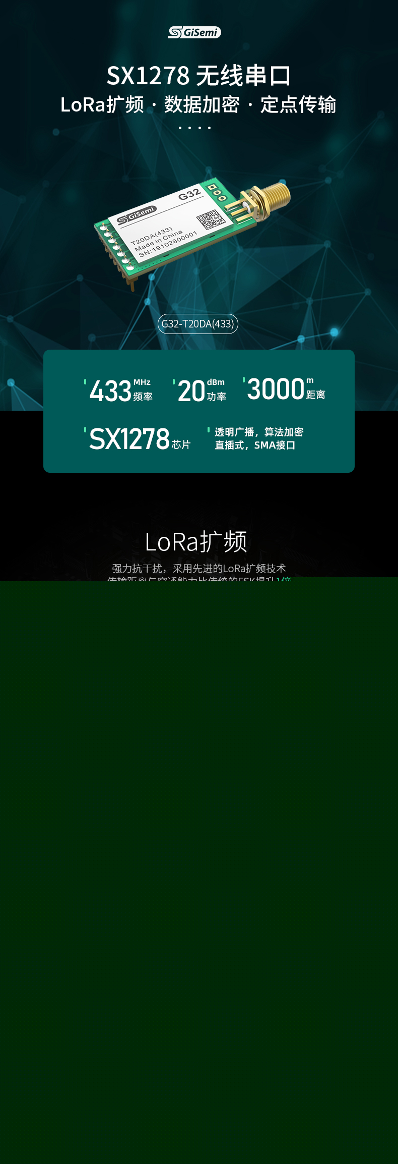 433MHz , 100mW,LORA擴(kuò)頻無線串口模塊,數(shù)據(jù)加密,定點(diǎn)傳輸