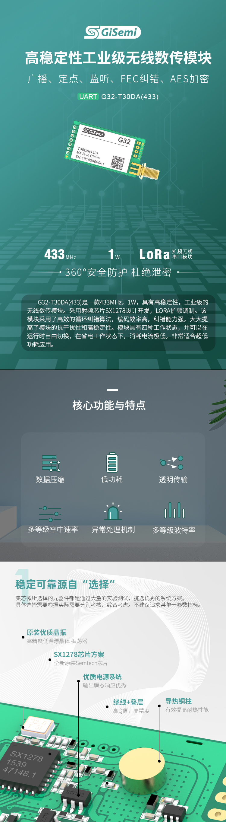 433MHz , 1W,LORA擴(kuò)頻無線串口模塊,數(shù)據(jù)加密,定點(diǎn)傳輸