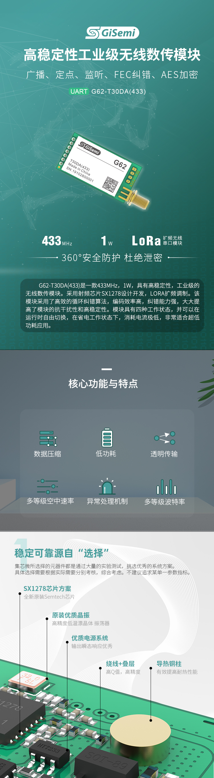 433MHz , 1W,LORA擴(kuò)頻無線串口模塊,廣播、定點(diǎn)、監(jiān)聽、FEC糾錯(cuò)、AES加密