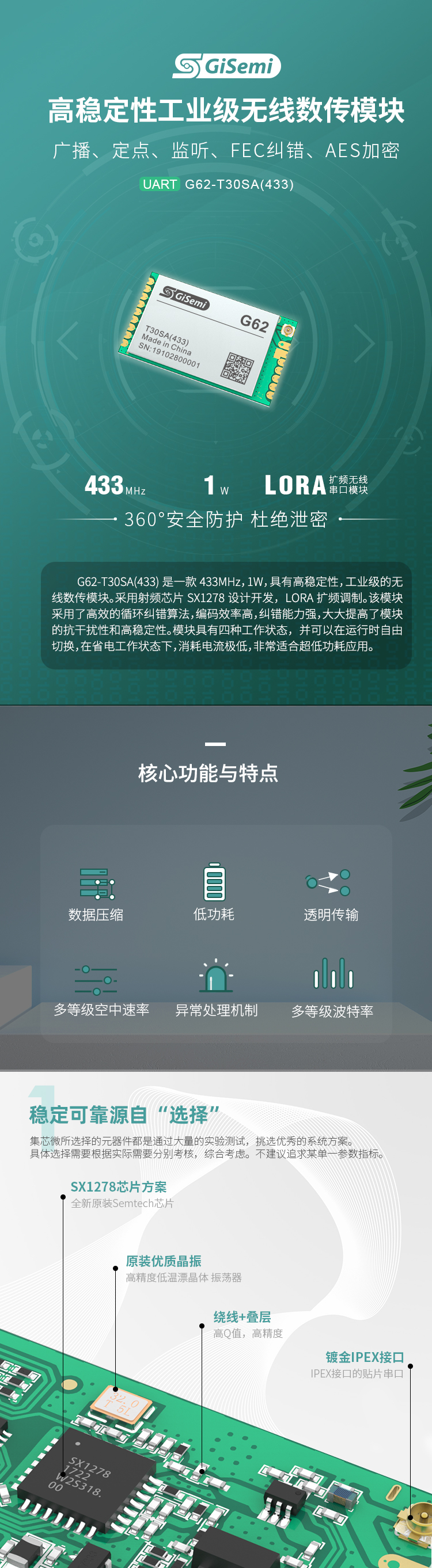 433MHz , 1W,LORA擴(kuò)頻無線串口模塊,廣播、定點(diǎn)、監(jiān)聽、FEC糾錯(cuò)、AES加密