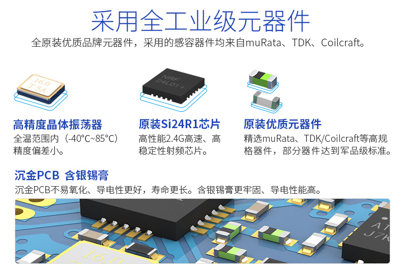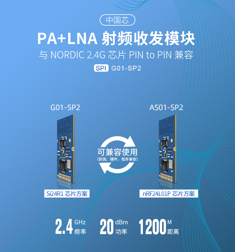 基于Si24R1帶PA、LNA和屏蔽蓋的2.4G,100mW,集成PCB天線射頻收發(fā)模塊