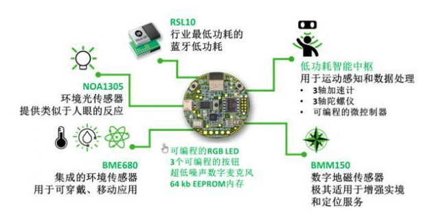 RSL10傳感器開發(fā)套件基于高度集成的RSL10系統(tǒng)級封裝(RSL10 SIP),含全系列低功耗配置傳感器,包括環(huán)境、慣性和環(huán)境光傳感器。